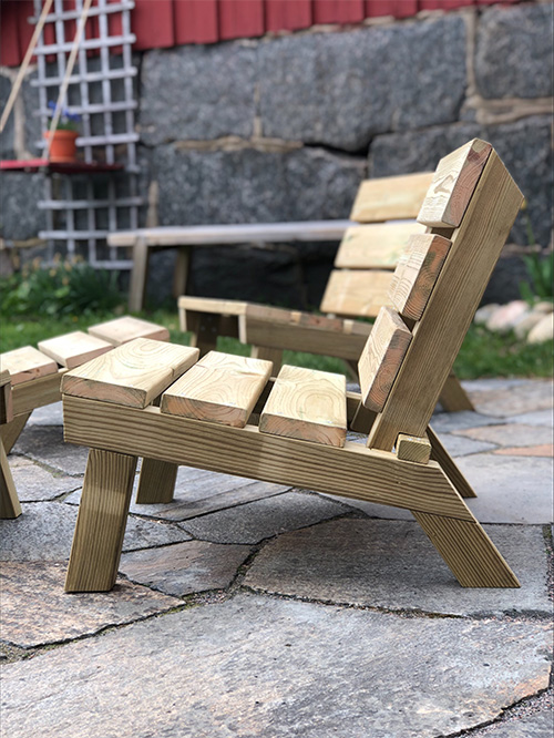 Det är inte alltid man har möjlighet att köpa och frakta hem långa brädor från en brädgård, eller har de verktyg som behövs. Det slipper man med Hembyggds färdigkapade paket och man får fokusera på det roliga. Att snickra.